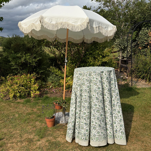 Parasol Bar package including one bar height table, parasol, 2 drinks dispensers and 2 galvanised buckets.