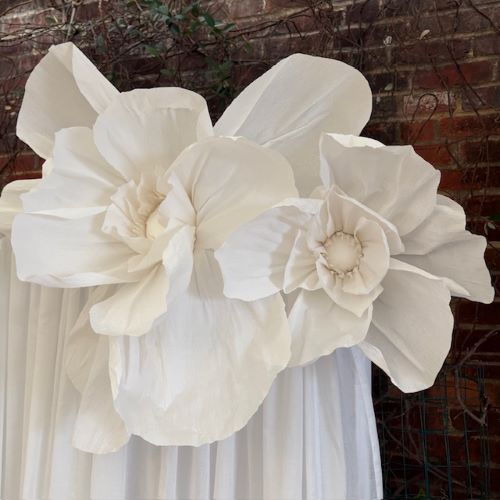 Giant paper flowers. These are available in a variety of colours and sixes. They can be hung from ceilings or backdrops.