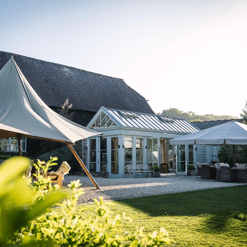A beautiful barn on the Surrey Sussex border surrounded by 100 acres of farmland.